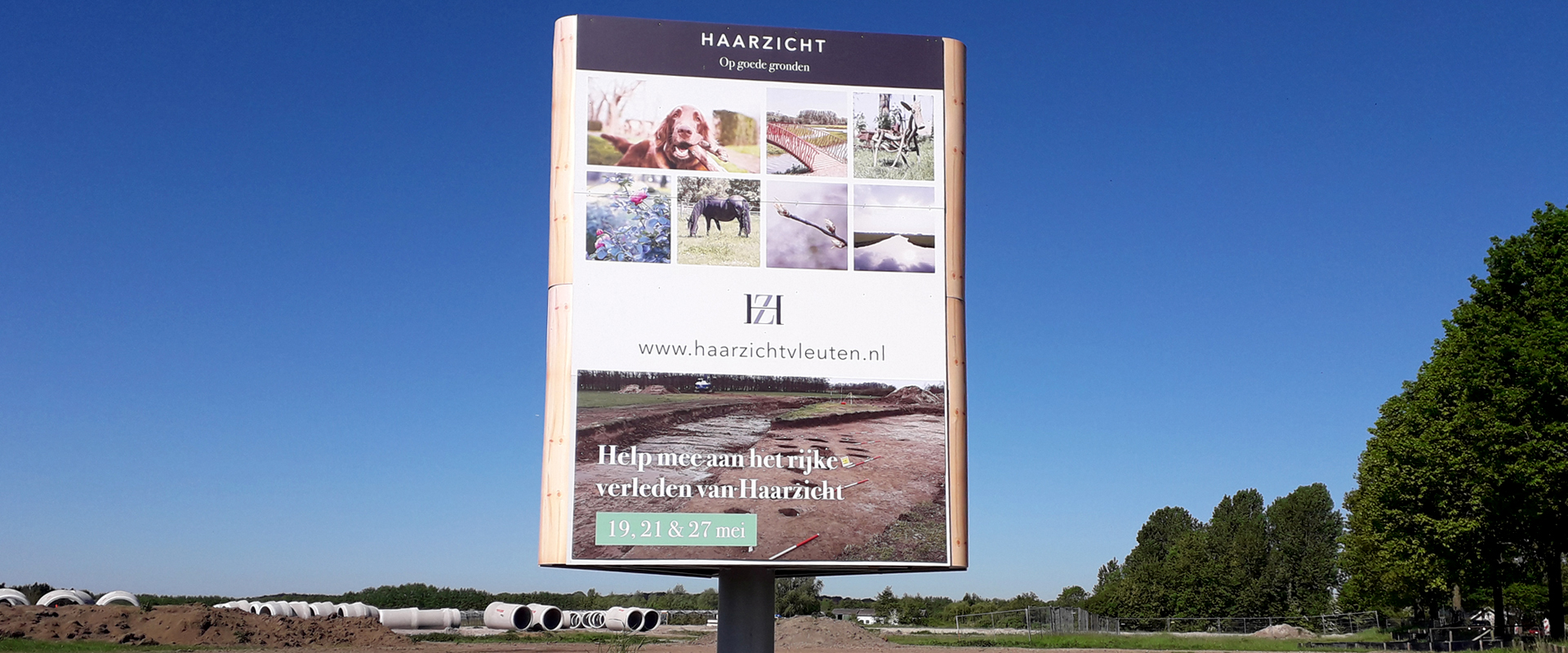 Haarzicht is de naam van een fraai woongebied tussen de kern van Vleuten en kastelendorp Haarzuilens. Voor de gebiedscommunicatie verzorgden wij in opdracht van AM/Bunnik Projecten een iconische informatiezuil.
